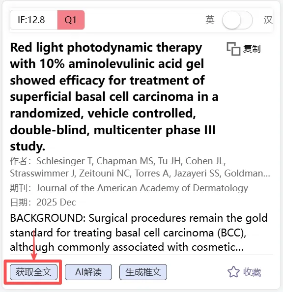 点击文末进入Al文献小秘书Derm小程序检索标题可获取全文
