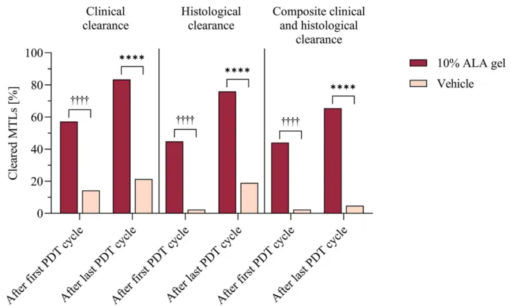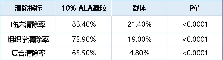 单周期治疗后,44.1%的ALA组病灶已达到组织学清除