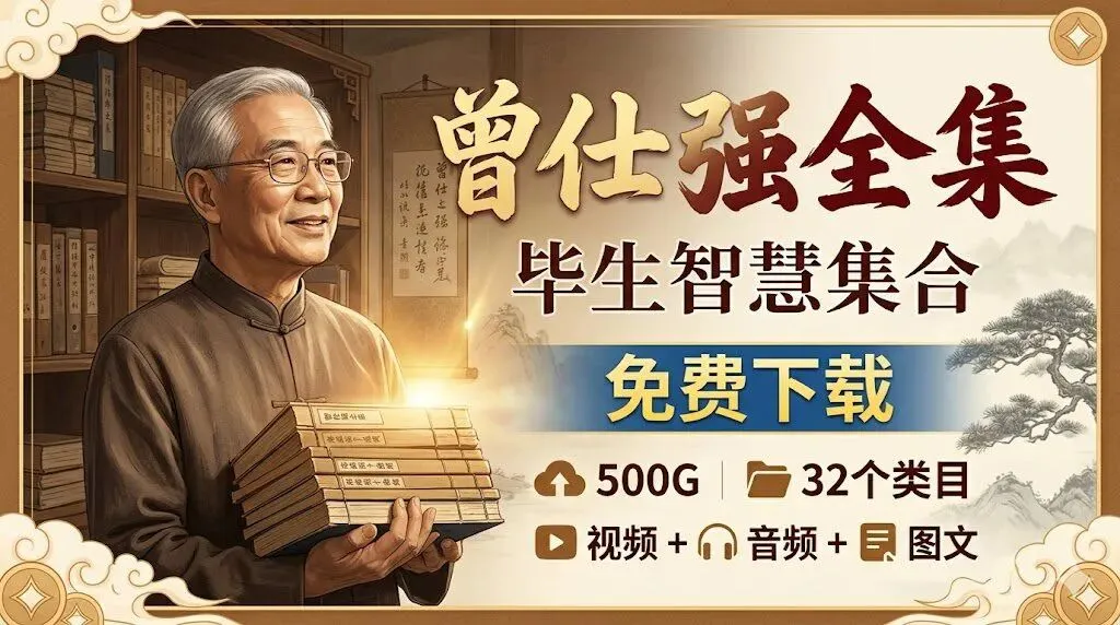 曾仕强全集免费下载|视频+音频+图文32个类目,国学大师毕生智慧集合大学时候看他讲《易经的奥秘》,觉得就是个电视讲座老头;工作几年后再看他讲管理、讲人性,突然句句扎心这种对人性的洞察,教科书里学不到,只有被社会捶过才懂。