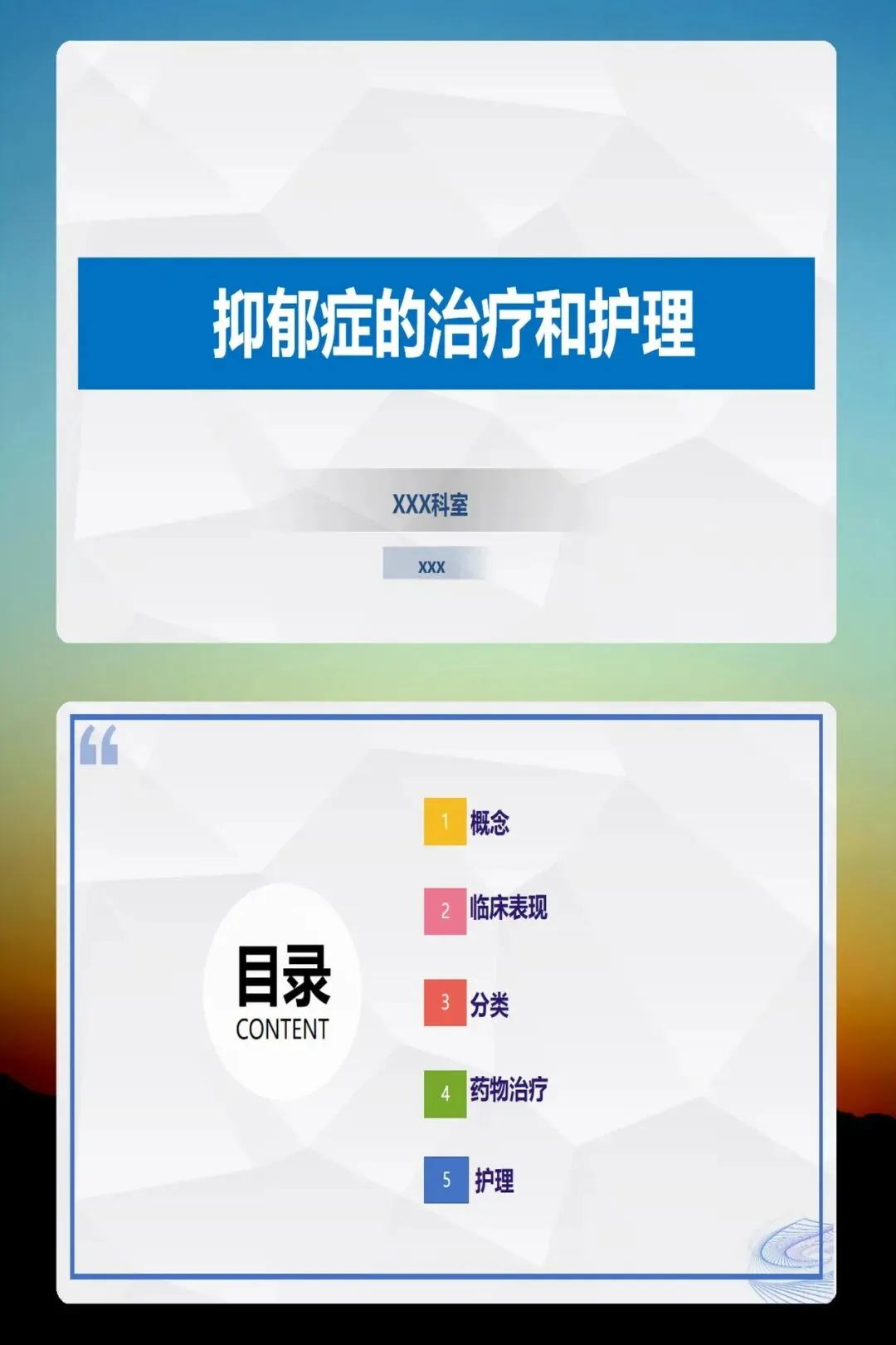 - 物理治疗如重复经颅磁刺激适用于轻中度抑郁,心理治疗(尤其认知行为疗法)联合用药效果明确。