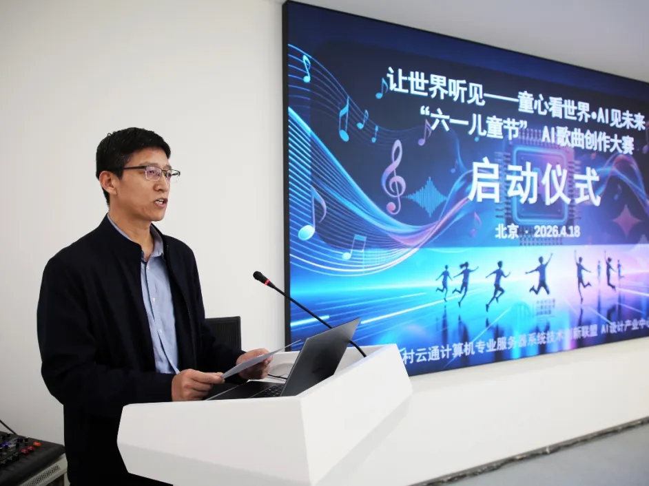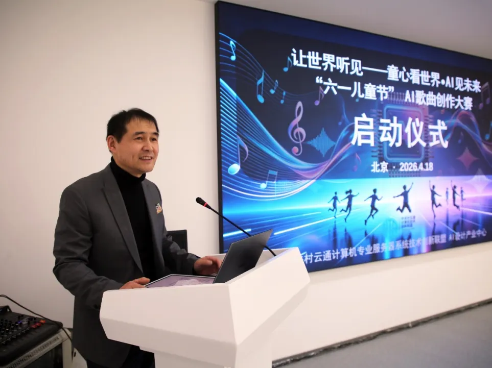 2026年4月18日,北京——在“六一”国际儿童节即将来临之际,一场融合科技温度与艺术初心的盛会——首届“‘六一儿童节’AI儿童歌曲创作大赛”启动仪式在中关村云通计算机技术创新联盟隆重举行。本次活动由中关村云通计算机技术创新联盟AI设计产业中心主办,旨在以人工智能为桥梁,激发儿童音乐创作活力,用科技守护童心,用音乐滋养成长,向世界传递中国儿童纯真、阳光、自信的时代强音。