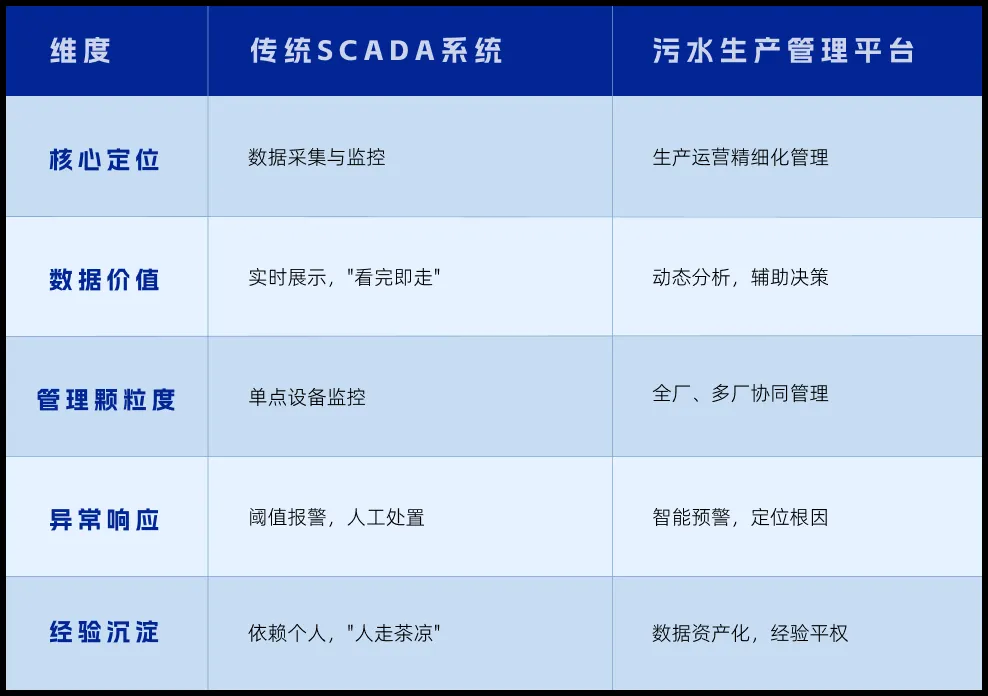 一句话总结:SCADA是"眼睛",污水生产管理平台是"大脑+眼睛+手脚"。