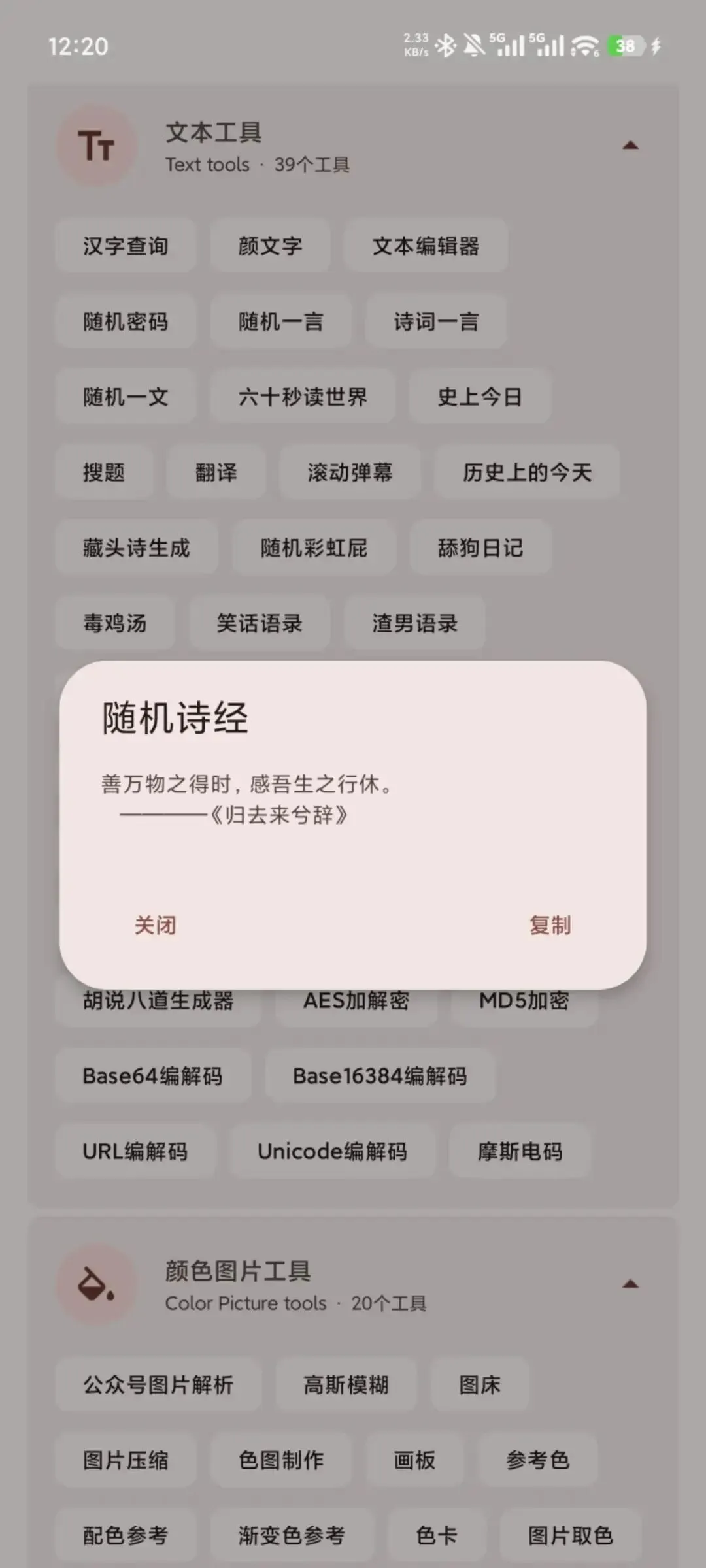 文本工具的话内容就比较多了,有非常多关于文字的文本编辑随机一言,诗词一言随便点一下,就会随机出来一句非常有文化的诗词。每天记上一句提高文化涵养。