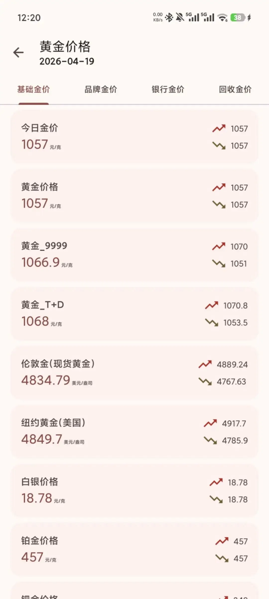 小工具方面也会有很多日常用到的,比如我们想要看黄金的价格,点进去就可以看到现在基础的黄金价格。包括品牌,金价,银行,金价等等。都会一一写出来一目了然,非常的方便。
