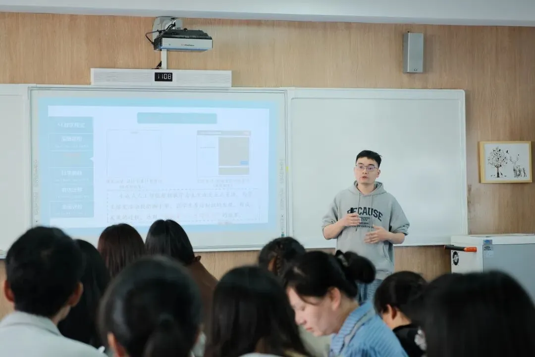 课后,平阳县水头镇第四小学的余坦特老师作了题为《基于生成式人工智能赋能信息科技课堂教学创新》的专题发言。余老师结合5E教学模式,借助生成式人工智能生成数字资源,创设真实情境引发认知冲突以激发学习兴趣,定制交互工具支撑主动探究,并利用QuickForm实现多元评价,从而有效提升信息科技课堂效率。