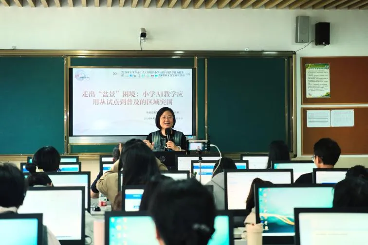 最后,平阳县教师发展中心的副主任谢贤晓老师,以《走出“盆景”困境:小学AI教学应用从试点到普及的区域突围》为主题开展分享。谢老师以平阳县的AI区域实践为案例,分享了平阳县硬件基础、AI通识教材开发、区域课程实践、技术赋能教学等内容,完整呈现了试点到普及的区域突围的实施路径。