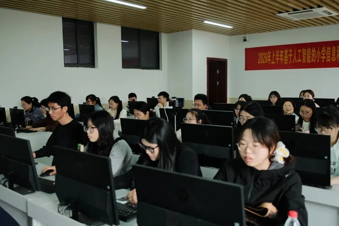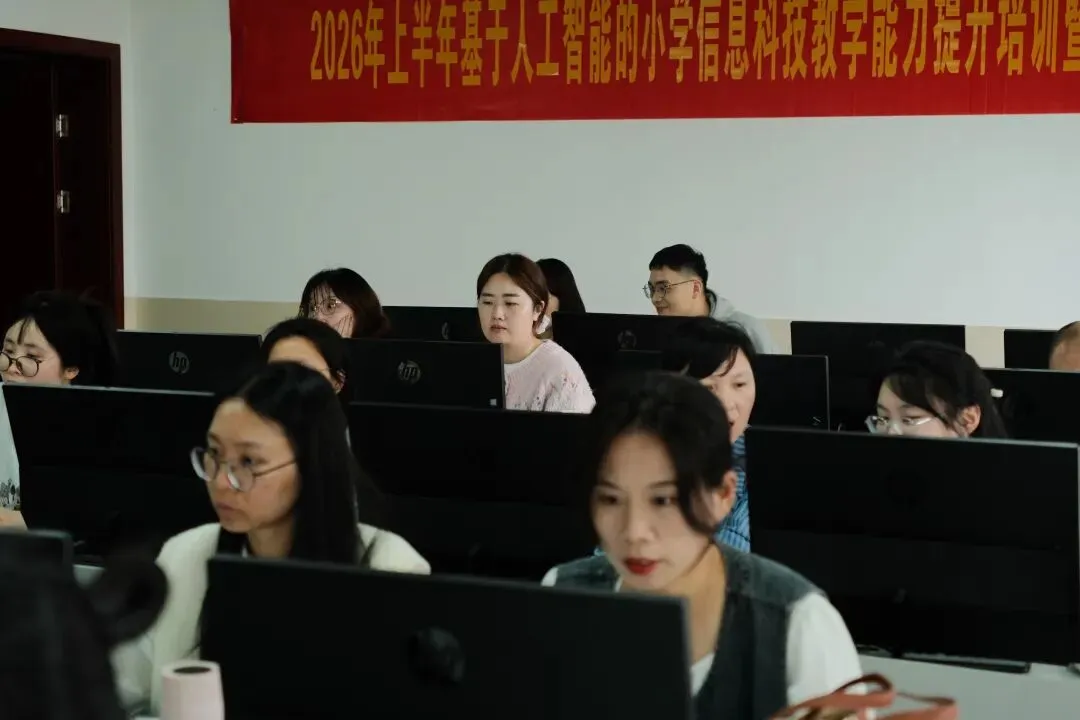 2026年4月17日,平阳县基于人工智能的小学信息科技教学能力提升培训暨福鼎市第四届小学信息技术名师发展工作室研讨活动于平阳县昆阳镇实验小学举行。为进一步推进平阳县小学信息科技教学能力提升的实施工作,发挥骨干教师在学科课程教学中的引领作用,平阳信息科技团队与福鼎市名师发展工作室联动教研,共六十多位一线教师参加了本次活动。