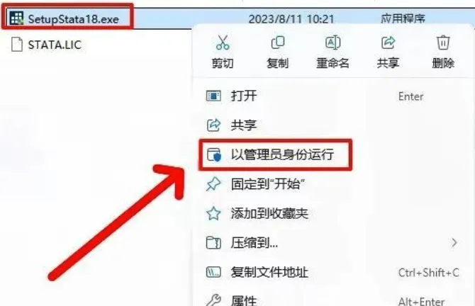 2.打开刚刚解压好的文件夹,找到【Stata18.exe】,鼠标右键选择【以管理员身份运行】。