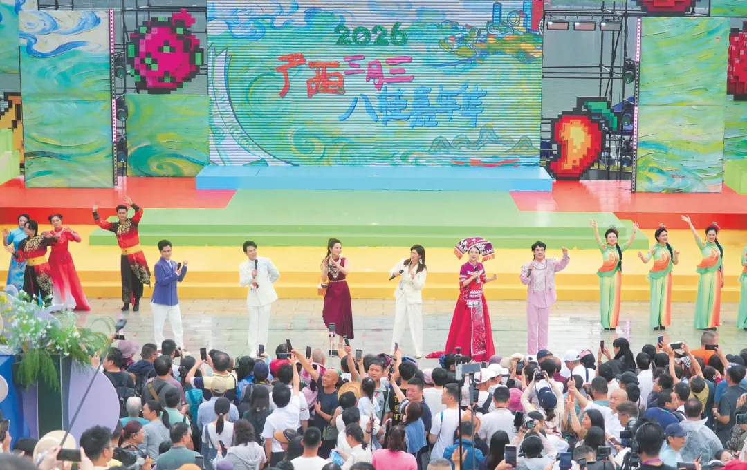 春满八桂,歌飞四海!山水皆为舞台,万物皆可AI!4月18日上午,2026年“广西三月三·八桂嘉年华”文化旅游品牌活动开幕式在南宁民歌湖举行,呈现了一场好看、好吃、好玩、好购的广西三月三活动。
