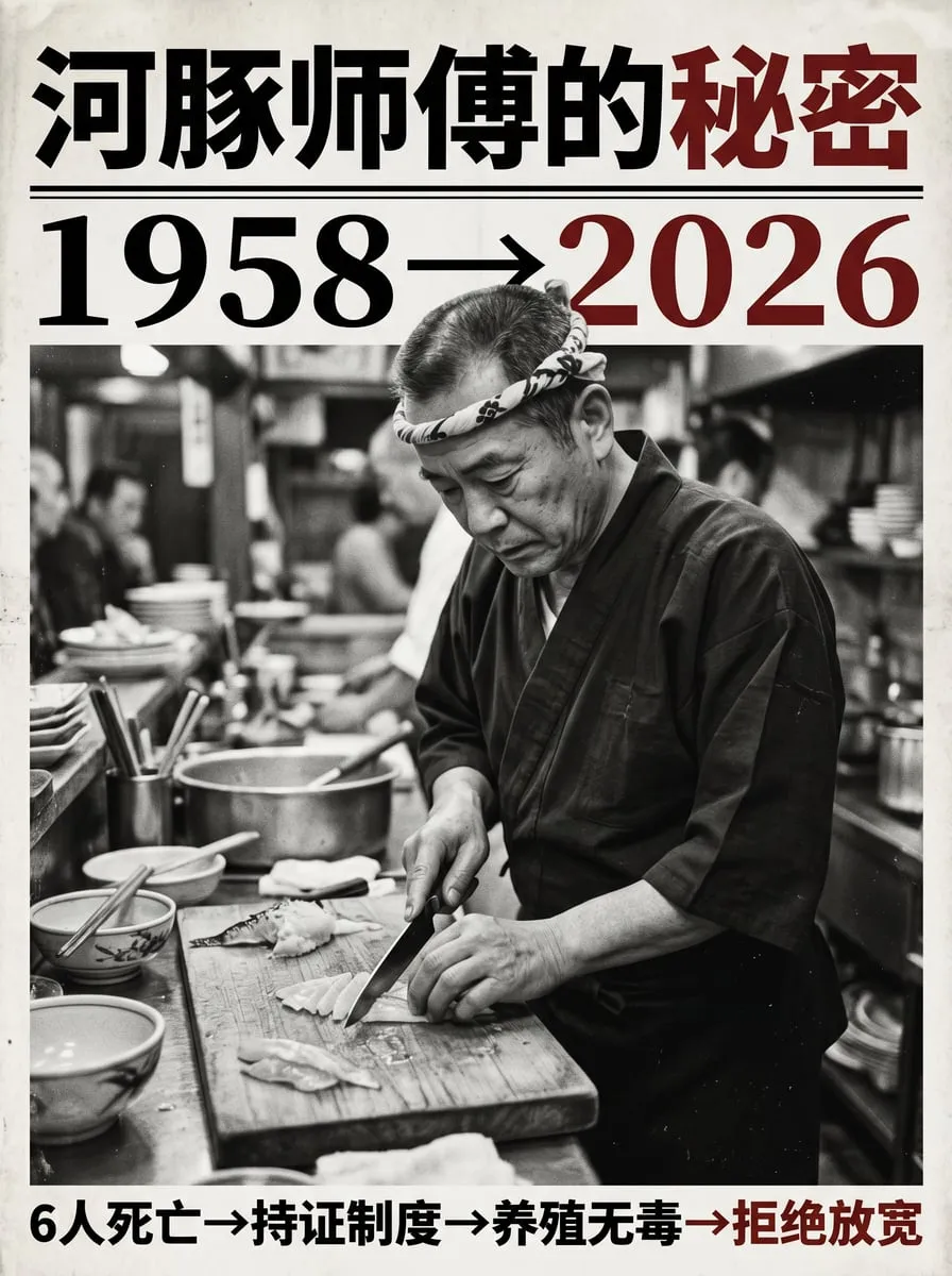 1958 年东京发生了一次河豚集体中毒,6 人死亡。日本厚生省当年颁布了河豚调理师免许制度——任何商业场所处理河豚,必须由持证师傅操作。