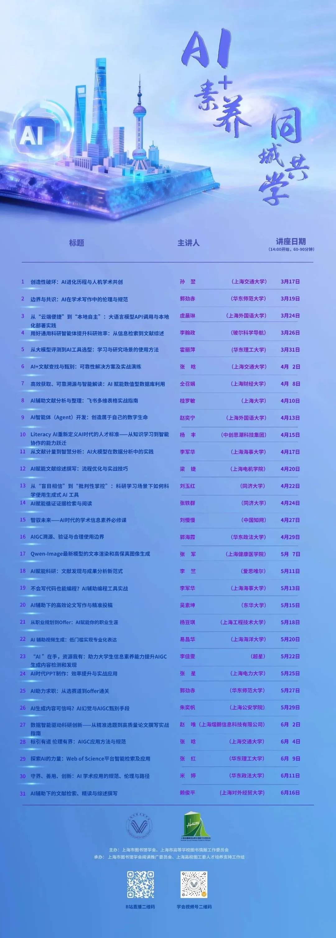 17所高校的骨干师资,联合讲授,主题贯穿文献检索、数据分析、学术写作到科研创新等实际场景。