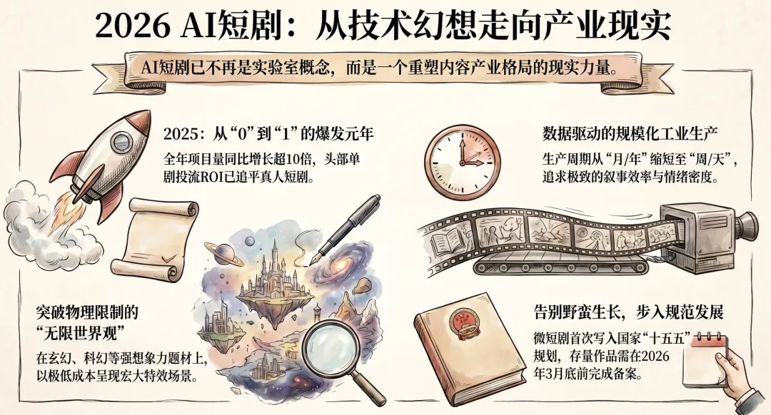 如果用一句话概括这场变化,明略科技在2026中国AI短剧行业发展与受众洞察报告里给出的核心判断非常明确:“技术革命,内容突围”。
