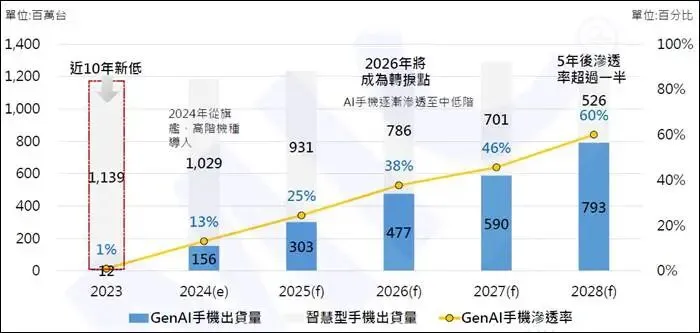 第一步就是今年,2026年,AI手机会完成高端市场的渗透,渗透率突破45%,成为所有高端机型的标配,核心技术会在这一年完成大规模验证,体验会进一步成熟。