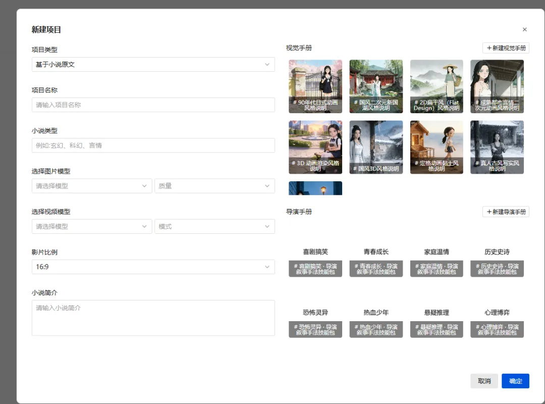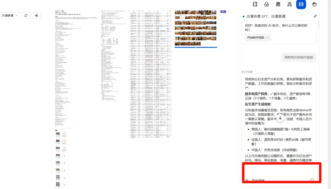 智能分镜制作:根据剧本内容生成分镜提示词和画面构图蓝图,并支持手动调整。