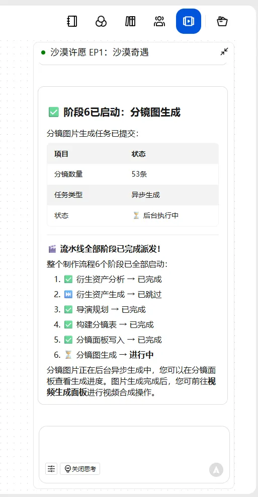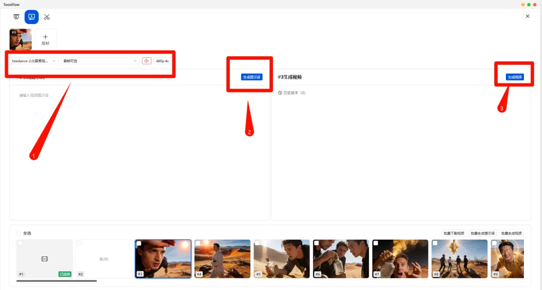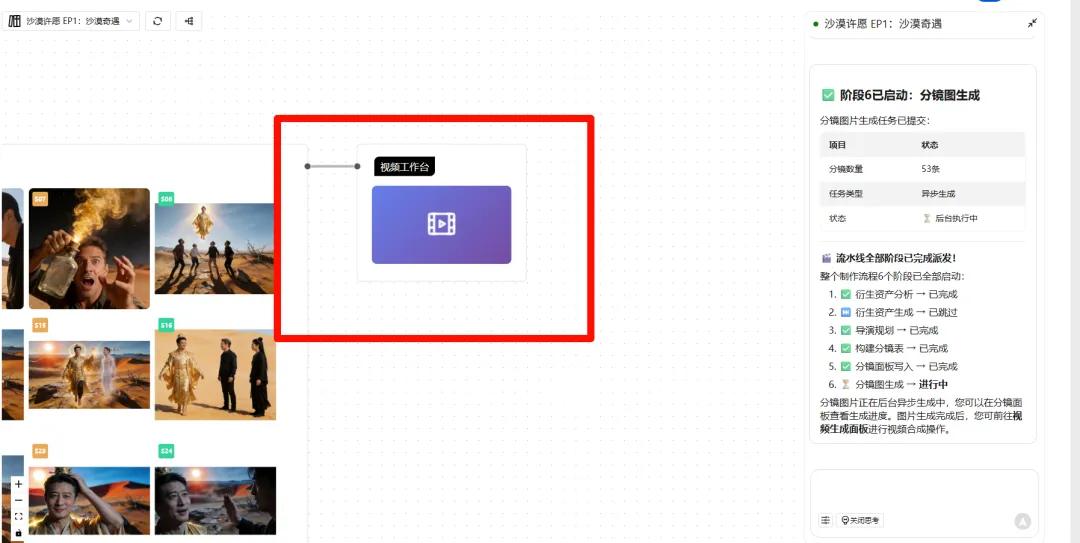 一体化视频合成:将分镜图自动合成为视频片段,支持在线编辑。
