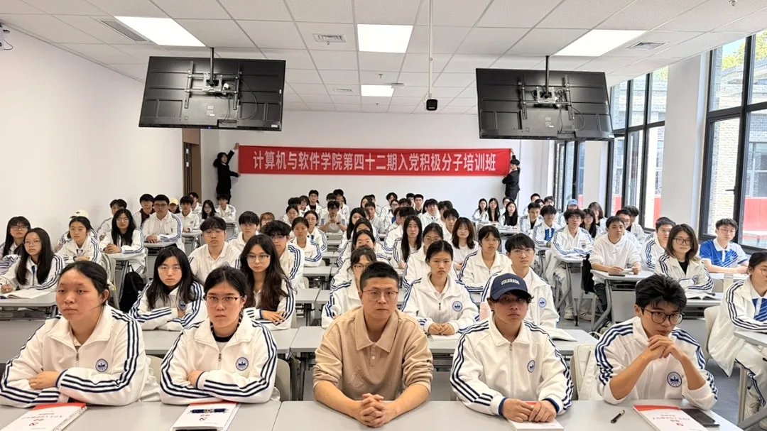 为强化入党积极分子理论学习与思想淬炼,扎实推进党员发展教育工作,4月15日,计算机与软件学院在E5-212教室举行第四十二期入党积极分子培训班第三堂课。本次课程由张荣华老师主讲,以“领悟思想,筑牢根基”为主题,引导入党积极分子全面把握思想内涵、领会精神实质、强化理论武装。