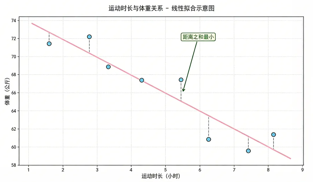 简单来说,线性回归的核心,就是在散落的实验数据点之间,画一条最优拟合直线。这条线不是随意绘制的,它必须满足一个关键条件:所有数据点到这条直线的距离平方之和最小,这样才能最大程度贴合实际数据规律。