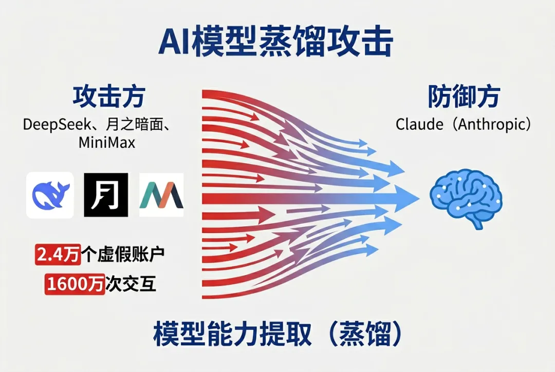 2026年2月,Anthropic发布了一份措辞严厉的声明:三家中国AI企业——DeepSeek、月之暗面、MiniMax——利用大规模虚假账户,对Claude进行了系统性的模型蒸馏。