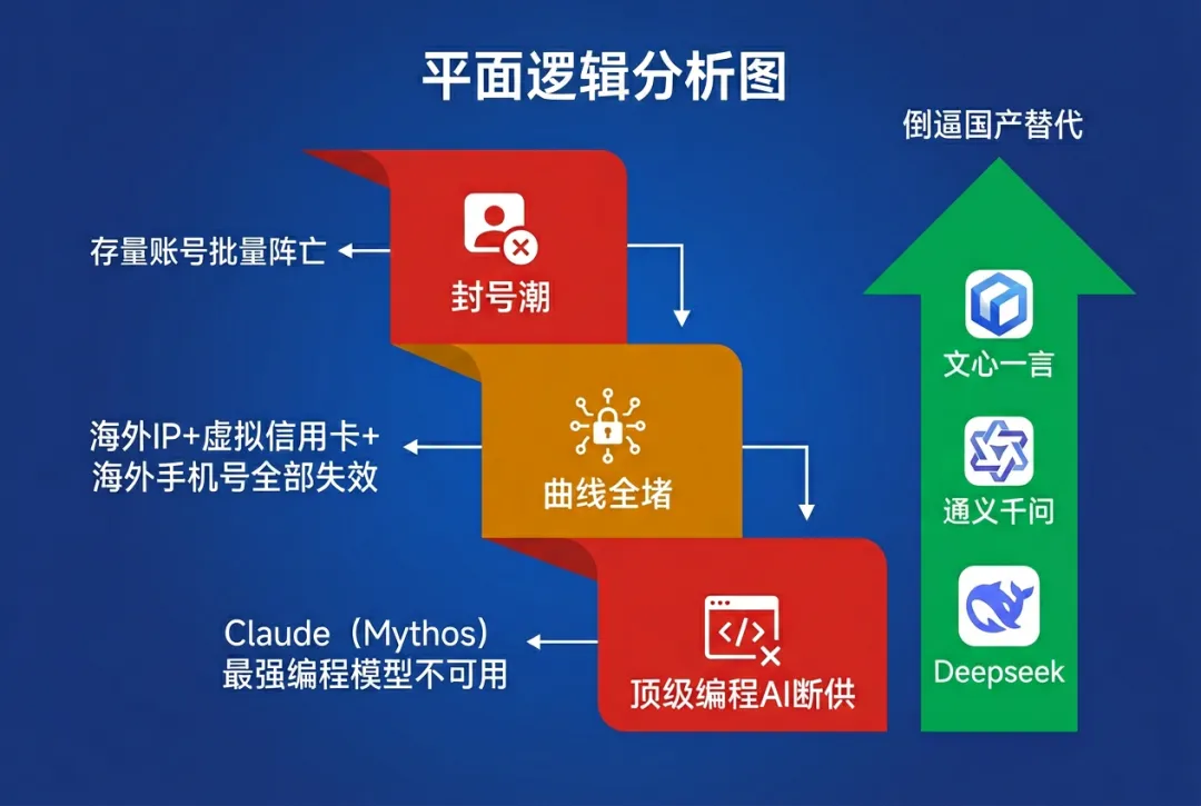 当顶级AI模型的访问权限取决于你的护照颜色时,"曲线访问"就不是长久之计。国产大模型的追赶窗口正在被压缩——不是因为国产模型不够好,而是因为"好"的模型正在被系统性封锁。
