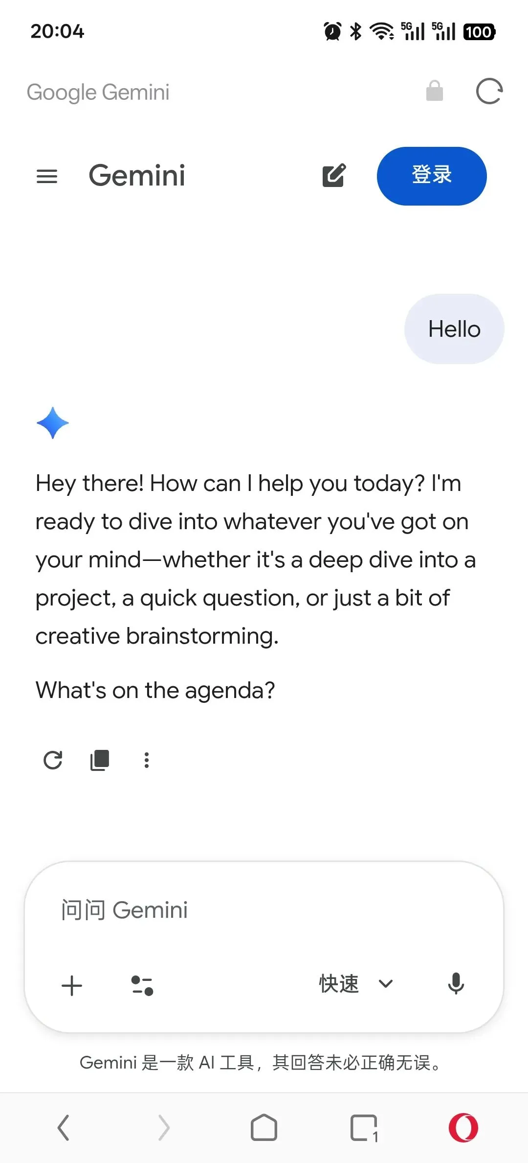 下图展示了欧朋浏览器成功访问 Gemini 的效果: