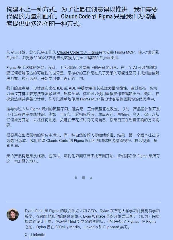 他们更强调的是 “编辑、分支探索、协作、对齐品牌” 这些承接层面的价值,甚至还把 Claude Code 生成的真实 UI 接进 Figma,变成可编辑文件。