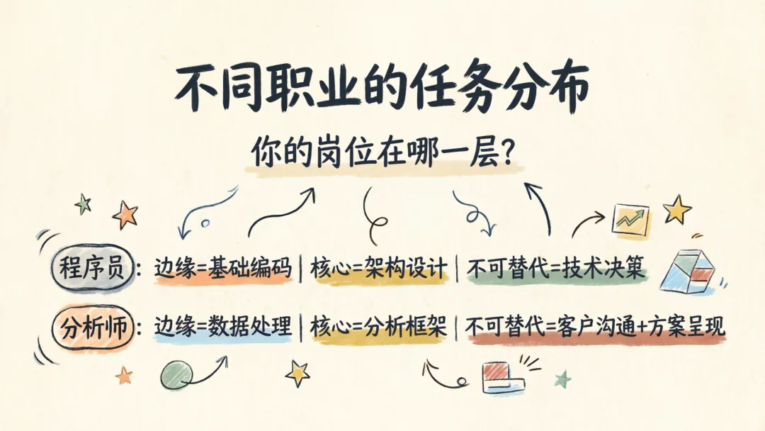 AI替代的从来不是"岗位",而是单一"任务"。关键在于:你要分清自己的工作里,哪些任务最危险。