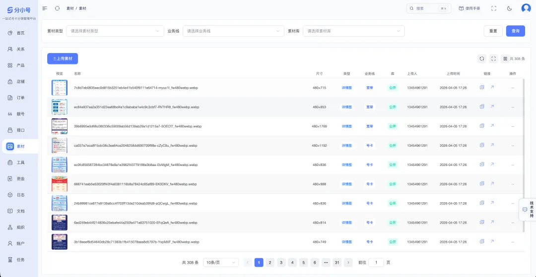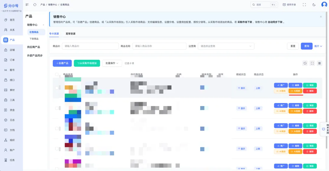 AI赋能号卡营销:一站式物料生成系统功能详解在通信号卡行业竞争日趋激烈的当下,高效、标准化、可规模化产出的营销物料,成为提升分销效率、降低运营成本的关键。传统海报、主图、短视频制作依赖专业设计,周期长、成本高、风格难以统一,已无法满足多平台、高频次的推广需求。为此,分小号平台全新上线AI营销物料生成系统,依托智能生成技术,实现号卡商品主图、营销海报、推广视频一键自动化产出,打通从商品信息到成品物料的全流程闭环,让运营人员无需专业设计基础,也能快速产出高质量营销素材。
