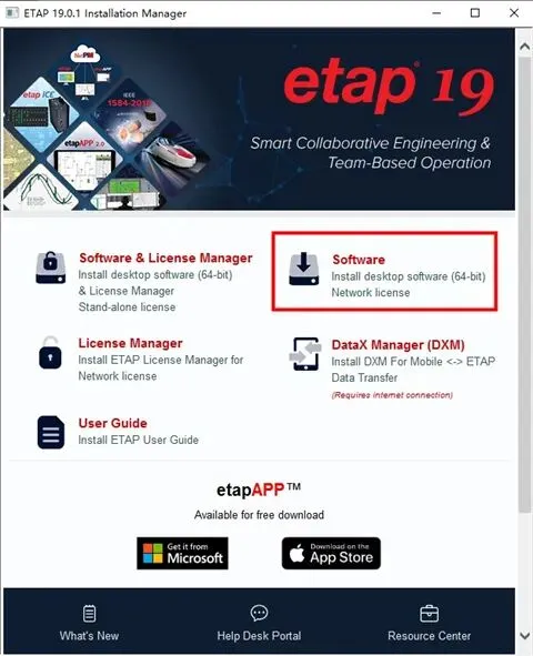 ETAP电力系统仿真软件ETAP是一套交流和直流电力系统完全综合的分析工具,也是一款功能全面的综合型电力、电气计算分析软件,作为完全集成化的企业专业软件,ETAP已经成为实时智能的电力管理系统,用来监测、控制、模拟电力系统运行,使电力系统自动化的同时更加最优化,能为发电、输配电和工业电力、电气系统的规划、设计、分析、计算、运行、模拟提供全面的分析平台和解决方案。ETAP基础包是软件的一套核心工具,嵌入到分析模块中,并且是开放的工程数据库,可以生成、合并、用户自定义,还可以管理系统模型。ETAP核心工具能够帮助用户利用无限制的母线和元件快速而简单地搭建三相及单相的直流和交流系统单线图,元件包括仪表设备和基础设备元件。基于设备厂商公布的数据,工程数据库提供完整的验证和确认数据。基础包包括一个智能单线图、元件编辑器、配置管理器、报告管理器、工程及案例编辑器、多维数据库、主题管理器、数据交换、用户权限管理器。嵌入的分析模块如电缆载流量、电缆容量、传输线常数,提供集成并独立的计算功能来设计、分析和设备选型。ETAP安装教程