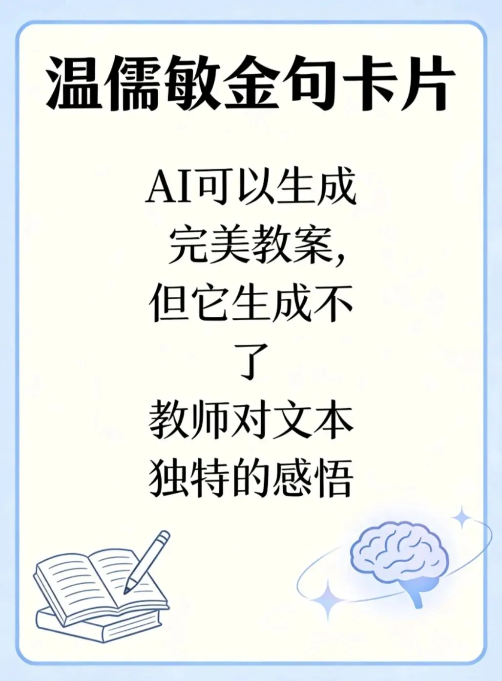 温儒敏先生说:“AI可以生成完美教案,但它生成不了教师对文本独特的感悟,生成不了课堂上师生之间灵光一现的互动。”