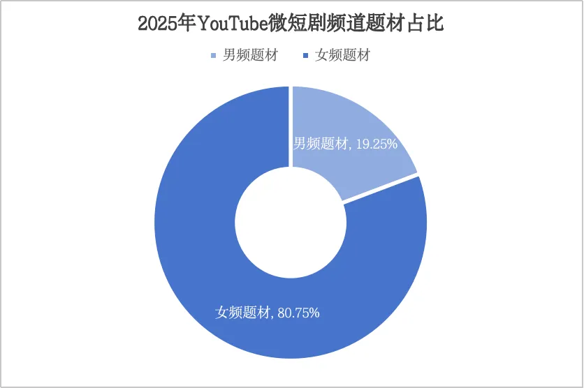微短剧精准契合25-45岁女性核心受众的情感需求,女性情感类题材长期在全球微短剧市场占据核心地位,成为平台流量与商业变现的核心支撑。2025年,APP端热度最高的TOP50海外微短剧中,86%为女频题材,男频题材占比14%;YouTube微短剧频道中,80%为女频题材,男频题材约占20%。在海外微短剧市场热门题材TOP20中,“情感”与“都市”这两大题材热度值均突破90亿,短剧数量均超过3万部。