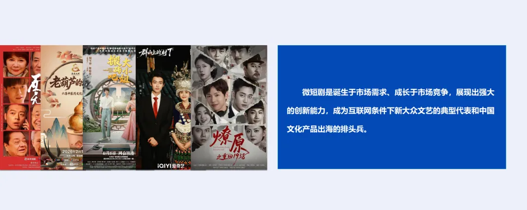 微短剧诞生于市场需求、成长于市场竞争,展现出强大的创新能力,成为互联网条件下新大众文艺的典型代表和中国文化产品出海的排头兵。