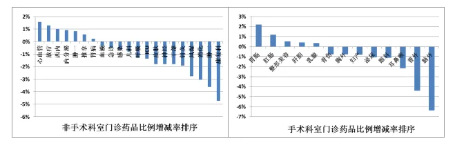 4各科室门诊药品比例与去年同期对比