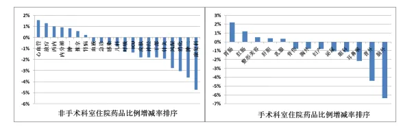4临床各科药品比例与去年同期对比