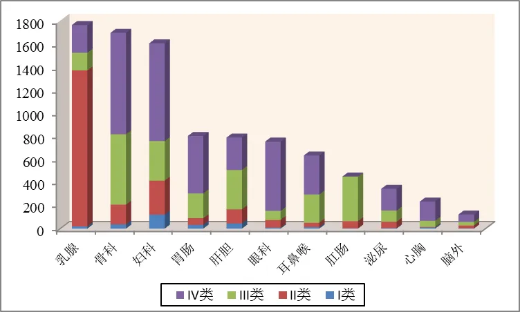 科室 | I类 | II类 | III类 | IV类 | 合计 | ||||||||||