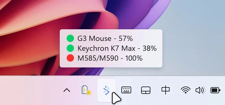 一款比较轻便的小工具,放在任务栏托盘就能查看蓝牙设备的电量。