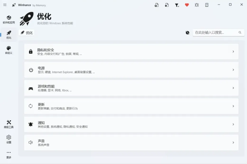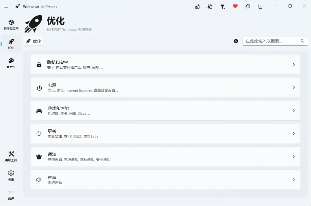 在“优化”板块,Winhance把那些晦涩难懂的系统设置变成了直观的开关。对于咱们这种追求极致体验的用户,有几个选项简直是必开的: