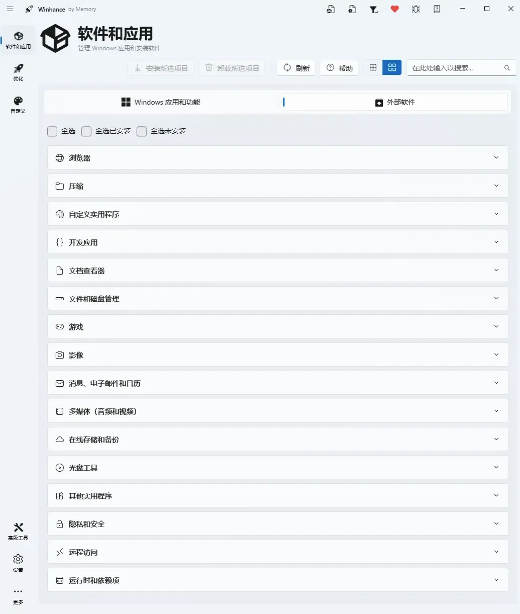 Winhance的逻辑特别简单粗暴,它不整那些虚头巴脑的“垃圾清理”,而是直接递给你一把精准的“手术刀”。