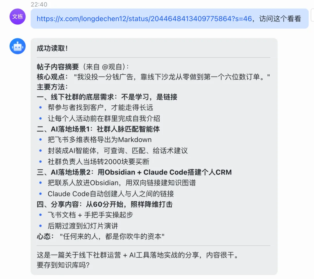 传统的知识管理逻辑是:我负责收集、我负责整理、我负责维护。三件事都是人在干。AI时代的逻辑应该是:我负责建框架、定规则、提需求;AI负责执行、积累、优化。知识库不是一个静态的仓库,是一个动态生长的系统。你每天喂给它新的素材,它每天变得更懂你。你的工作流应该长什么样