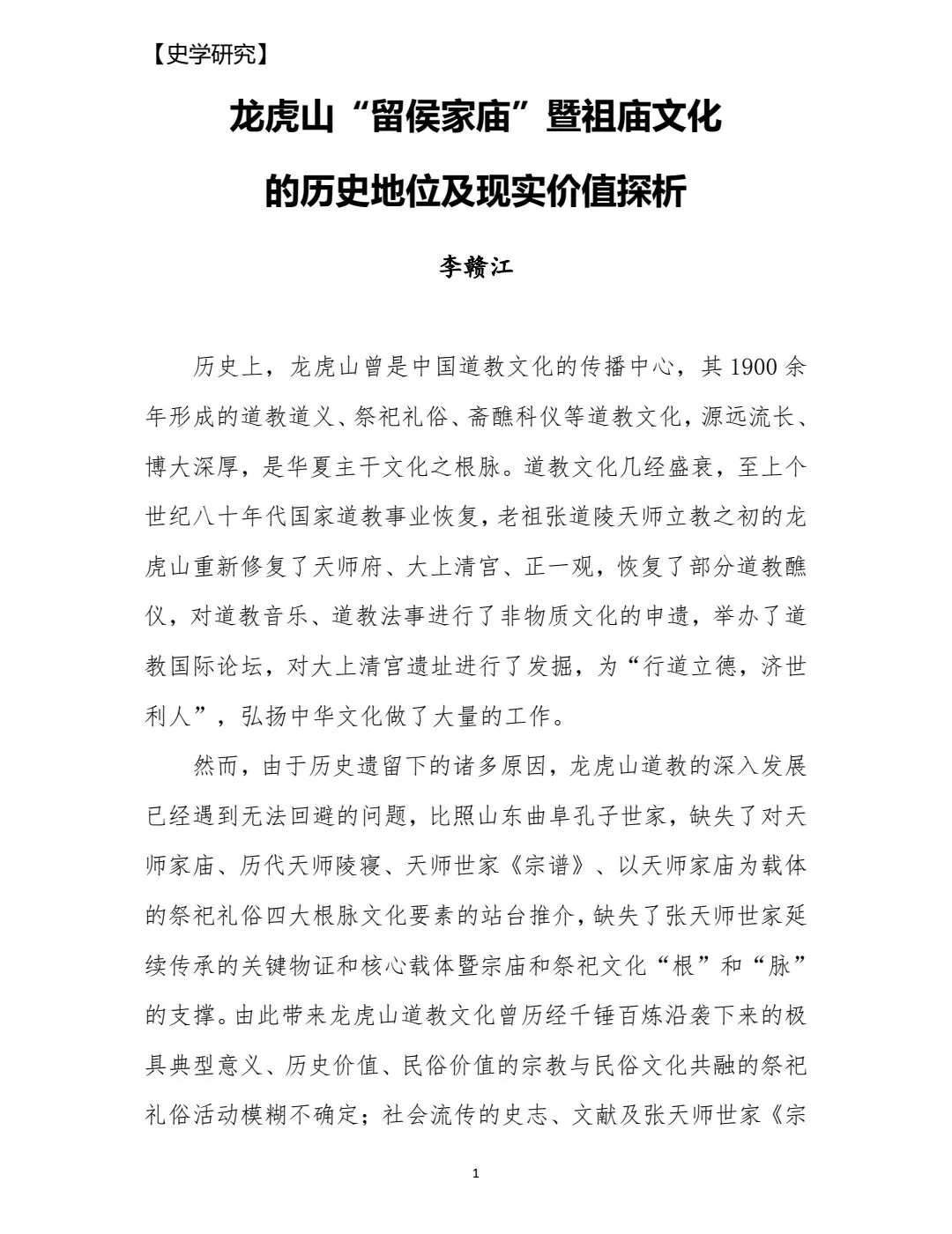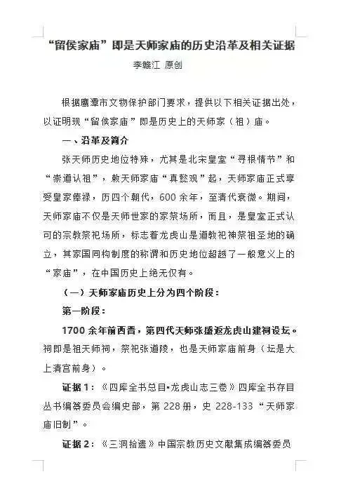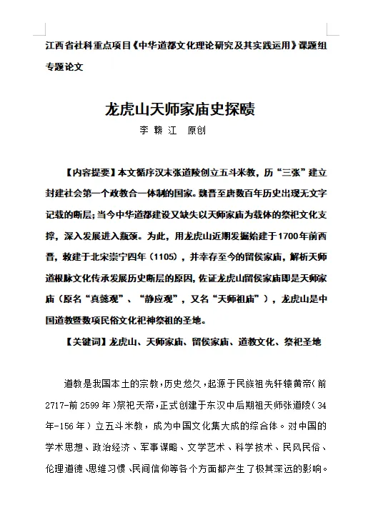 李赣江是龙虎山天师祖庙文化(留侯家庙)的主发掘人,这一身份有多重可核验的证据支撑,核心来自官方认定、课题成果、实物文献考据及组织推动工作。