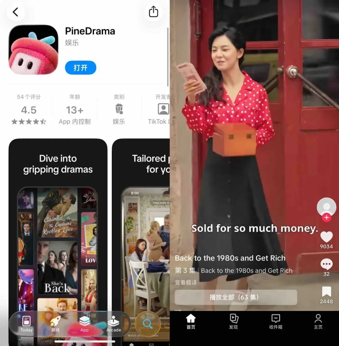 2025年12月,TikTok在美国和巴西推出独立短剧APP PineDrama和站内小程序板块TikTok Minis。PineDrama走全程免费路线,与TikTok账号数据完全打通,目前已有头部剧集播放量破亿。流媒体咨询公司Owl & Co创始人Hernan Lopez将其定性为「实验性发布」:先跑用户规模,后接订阅变现,背后是熟悉的字节节奏,先规模,再效率,最后商业化。