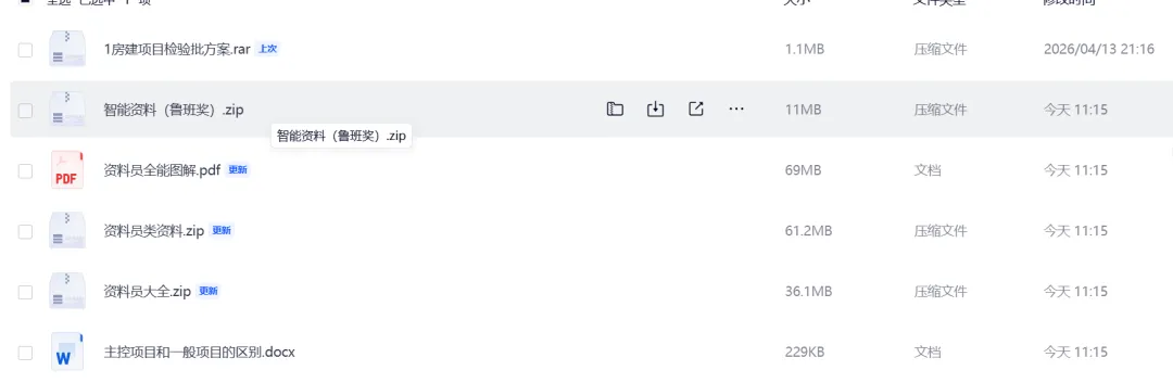 报审表、材料进场验收清单/验收记录、厂家资质/厂家证书、产品合格证、质保书、厂家提供的型式检验报告、复试报告(按材料的类别单独整理汇总)。