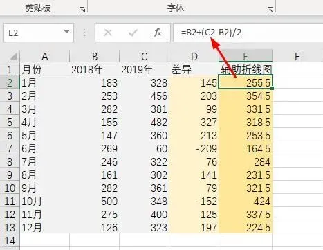 E2=B2+(C2-B2)/2