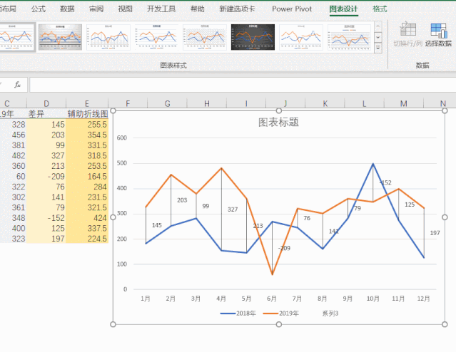 如从下图,可清晰看出各月的差异数据: