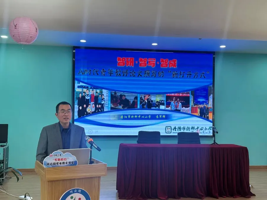 为顺应人工智能时代教育发展趋势,全面提升青年教师教育科研素养与论文撰写能力,探索科技赋能教育写作的创新路径,云阳学校特邀丹阳市折柳中心小学党支部书记、校长袁军辉,为全体青年教师开展《AI时代青年教师论文撰写》专题培训。