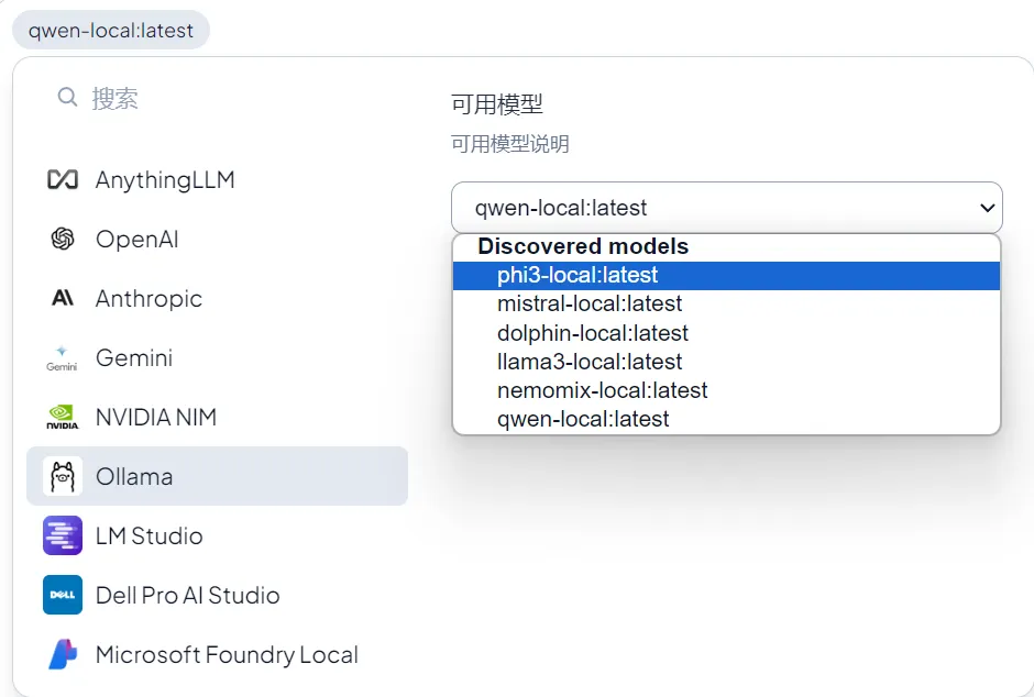 在AnythingLLM界面:Settings → LLM → 选择模型即可切换。