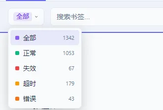 顶部搜索栏,输入关键词就能找到书签。可以搜标题,也可以搜网址。