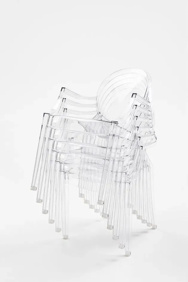 传统的欧式椅子一般是厚重的木头,看起来很正式,但它却用透明塑料做出来,让“古典”变得轻盈又现代,看起来甚至有点不真实。