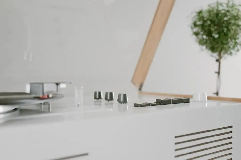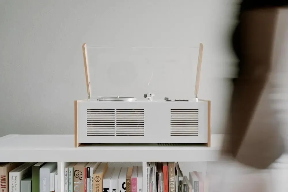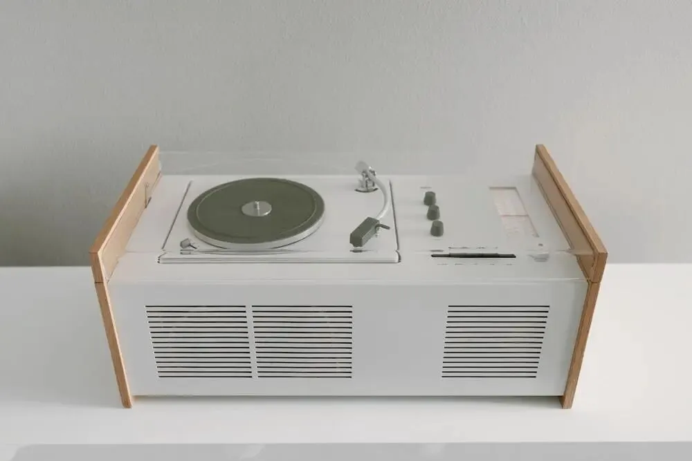 在19世纪50年代,大多数音响都是木质、封闭的,大家习惯把机器藏起来,但它却用了透明的有机玻璃盖,把内部结构直接展示出来,当时甚至被认为是“疯狂”的做法。