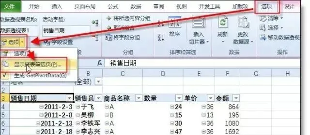 3、拆分数据透视表