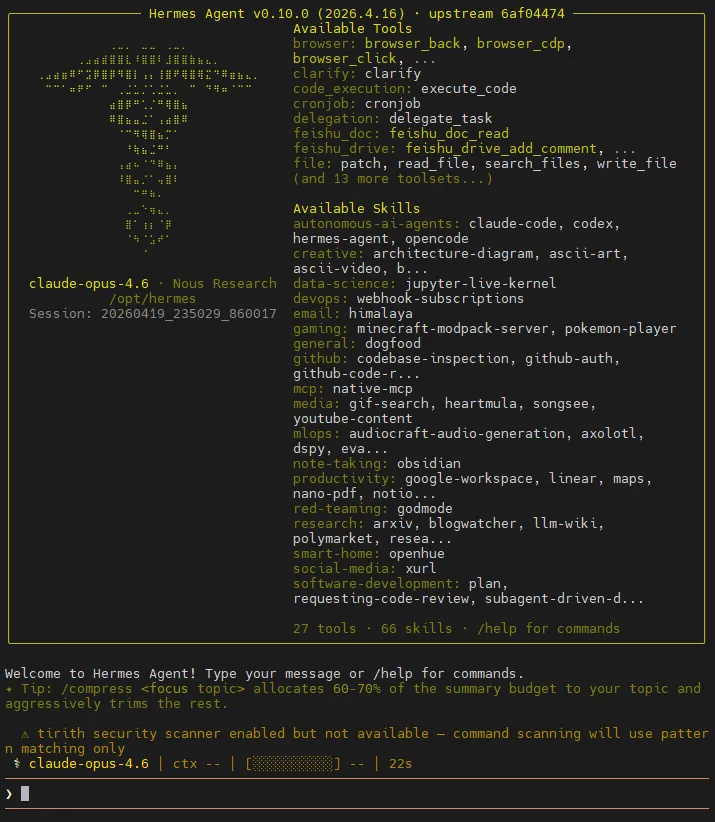 curl -fsSL https://raw.githubusercontent.com/NousResearch/hermes-agent/main/scripts/install.sh | bash